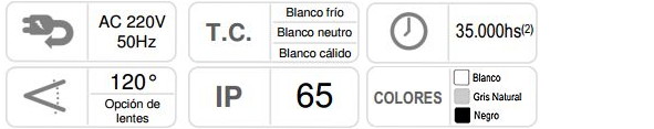 Proyector de Potencia. Iluminación de exterior e interior. Características técnicas: